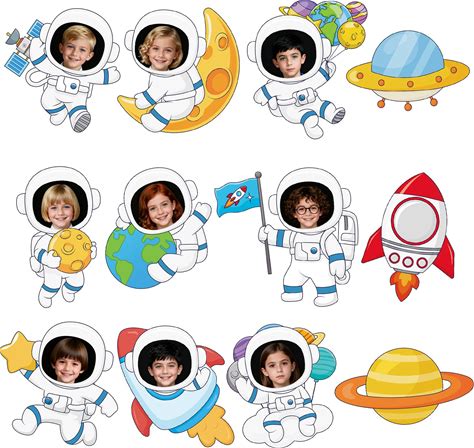 48Pcs Outer Space Cutouts, Colorful Rocket Planet Astronaut Cutouts DIY Photo Craft Bulletin Board Decorations For Outer Space Party Home School